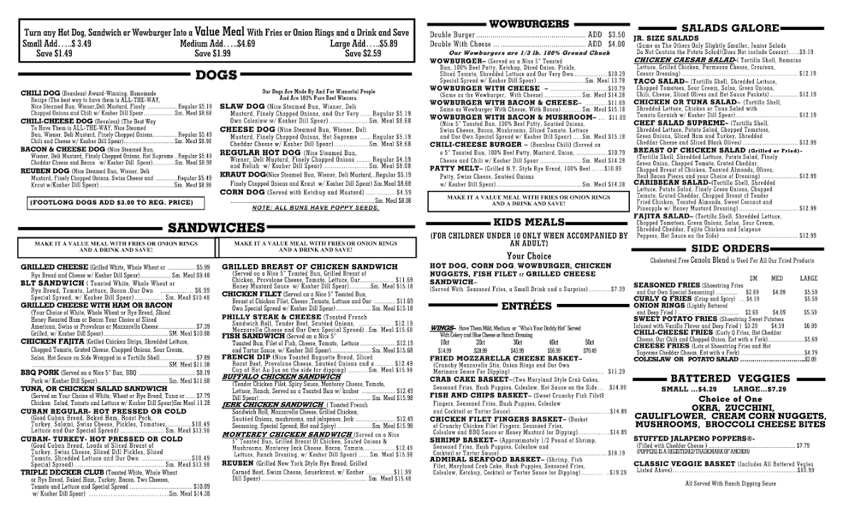 You’ll find comforting sandwiches like grilled cheese and BLT alongside well-loved hot dogs, including their signature chili and chili cheese dogs—all made with 100% pure beef. The sides, such as crispy fries and unique bites like broccoli cheese, complement these simple yet satisfying meals.
